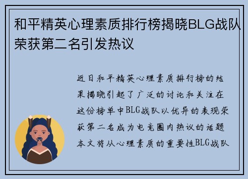 在当今电子竞技的热潮中,《和平精英》作为一款备受瞩目的游戏,吸引了无数玩家的关注与参与。最近,TES(Top Esports)在《和平精英》赛事中的表现,引发了玩家们对其速度之争的热烈讨论。这场争论不仅涉及到游戏内外的竞技水平,还触及到了团队合作、策略运用以及个人技术等多方面的问题。本文将从速度之争的背景、不同玩家观点、影响与启示,以及未来展望四个方面进行深入分析,以期全面呈现这一话题所引发的讨论...